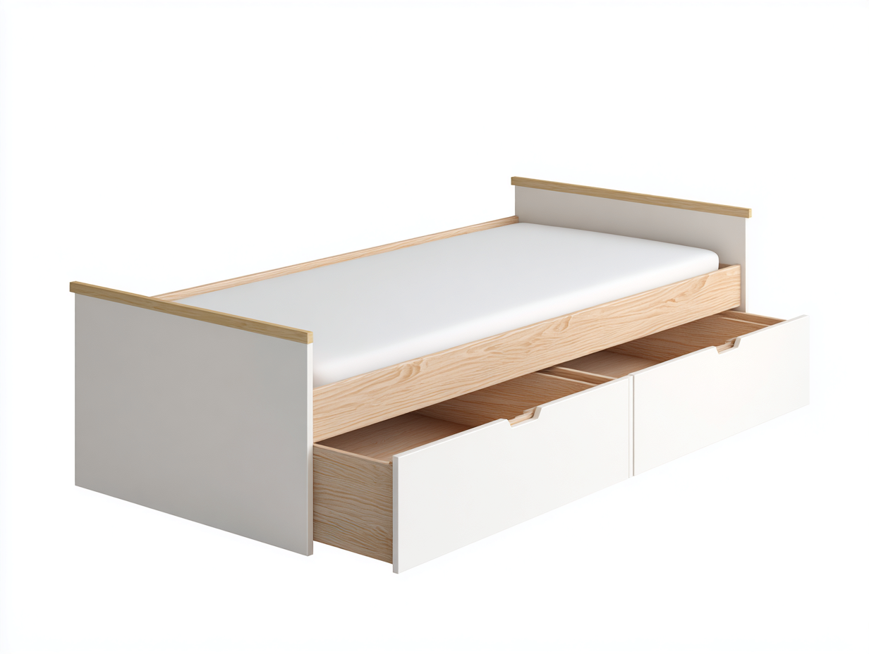 Letto singolo in legno con cassetti contenitore - 200x100x95 cm - bianco - design moderno camera da letto
