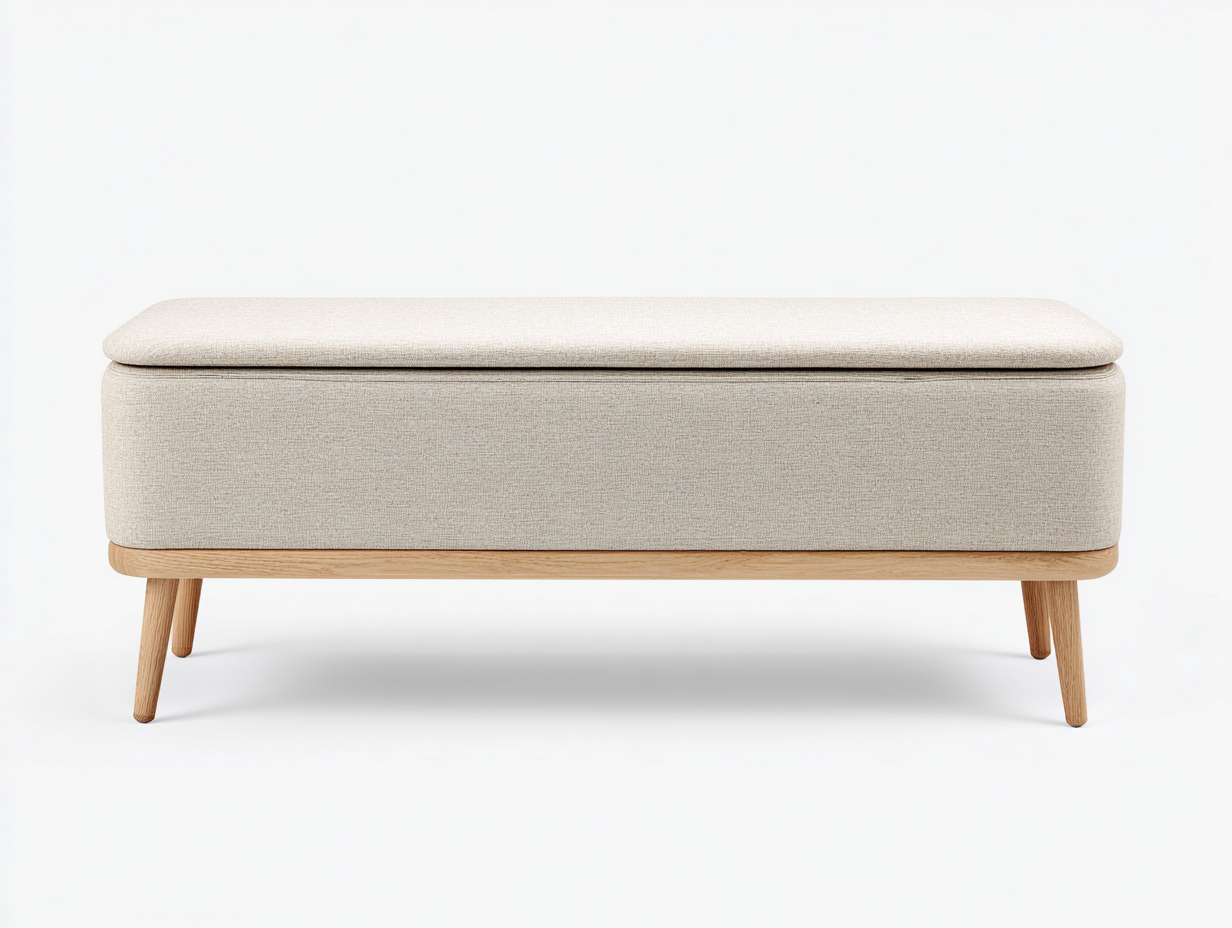 Questa panca contenitore imbottita unisce estetica nordica e funzionalità pratica. Il rivestimento in tessuto beige chiaro crea un aspetto elegante e luminoso, perfetto per ambienti come ingresso, camera da letto o soggiorno. La linea morbida e il design pulito rendono questo complemento d’arredo facile da integrare in spazi moderni.