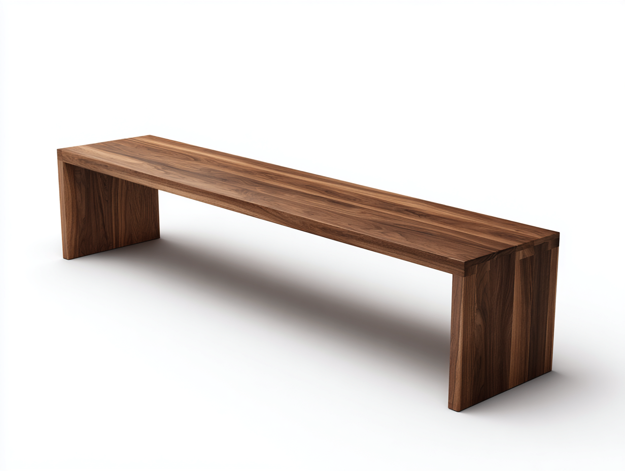La panca è realizzata in legno massello con finitura marrone noce che mette in evidenza le venature naturali del materiale. La lavorazione della superficie è progettata per offrire una struttura stabile e una texture liscia al tatto. Il design semplice valorizza la qualità del legno e si integra facilmente con arredi contemporanei.
